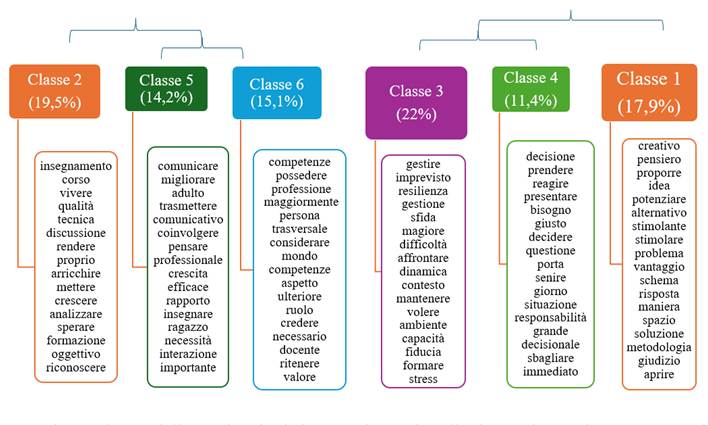 Tale aspetto è confermato anche dall’analisi qualitativa, che ha evidenziato le seguenti ricorrenze: volere (107); capacità (10); potere (93); imprevisto (82); migliorare (75); competenza (66); situazione (58); creativo (53); credere (51); situazione (49).